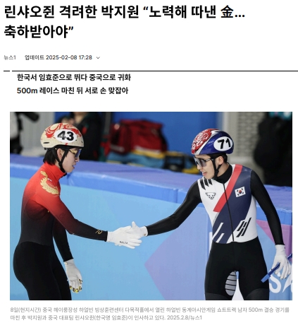 <매일경제> 20250209 금메달 따고 펑펑 운 린샤오쥔, 축하 건넨 한국선수...中매체는 “한국계 비난 힘들었을 것” [바로가기]